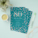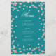 Design de "Programa de Festa de aniversário" elegante com Glitter Confetti em Rosa Dourado e Teal com texto personalizado.