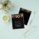 Por favor, note que este convite está no papel de folheto e é muito fino. Os envelopes não estão incluídos. Para convites mais espessos (mesmo design) visite nossa loja. Um convite moderno, na moda e glamouroso para uma festa de aniversário 90. Um fundo preto decorado com falso brilho. O nome é escrito com um moderno ouro escrito com letras no estilo à mão. Personalize e adicione os detalhes da sua festa. O número 90 é escrito com uma fonte de estilo de balão, script.