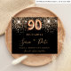 Observe que esta opção Save the date (Salvar a data) está no papel do folheto e muito fina. Os envelopes não estão incluídos. Para salvar o cartão Data (mesmo design) mais espesso, visite nossa loja. Uma moda e moda Salve a data para uma festa de aniversário 90. Um fundo preto decorado com falso brilho dourado. Modelos de uma data, nome e texto. Letras coloridas com ouro. O texto: Salvar a Data é gravado com um script de estilo com letra de tendência grande.