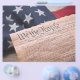 Nós, o preâmbulo Pessoas da Constituição dos EUA sobre uma bandeira americana antiga