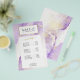 Este design de panfleto criativo apresenta um fundo aquoso roxo de lavanda macia com flechas de poeira de ouro falso para um design chic e abstrato. Personalize o texto limpo e moderno com seu nome ou nome comercial. Excelente a ser usado para listas de preços, menus de serviço ou promoções e anúncios. Arte e design © 1201AM Design Studio | www.1201am.com