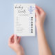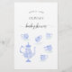 Uma elegante folha de jogos de chá para bebês / chá de fraldas "adivinhem as características do bebê", com um conjunto de chá doce da China, em azul-piscadela, e com rendas brancas (este é um efeito digital), com caligrafia elegante.