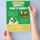 Crie um folheto comunitário para promover a ideia de "Adotar, Não Comprar" abrigo de resgate de cães. Estes folhetos são ideais para um veterinário, abrigo para animais e provisões de animais de companhia. Apresentando um modelo verde e amarelo, colorido e atraente, com animais de estimação bonitos. Basta adicionar seus detalhes clicando na guia azul "Personalizar".