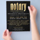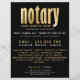 Folheto elegante, de tendência para agente de assinatura de empréstimo notário com fundo de padrão preto e ouro e script de caligrafia manuscrito ''notary' em cor de ouro profundo. Personalize com seus detalhes.