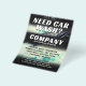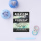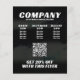 Tampa de lava-carros com imagem dinâmica de ondas de água espirrando e carro de luxo. Inclui lista de preços, descontos promocionais e espaço para código QR.