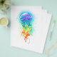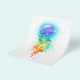 Água-viva grande, iridescente, desenhada artisticamente, brilhante, com longos tentáculos em branco, pintada sobre fundo de aquarela multicolorido. Água-viva arco-íris.