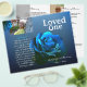 Amado Uma tipografia com FOREVERMORE em um símbolo infinito e rosas azuis digitalmente ilustrados em um memorial ou programa de serviços funerários. Inclui quatro locais para fotos do seu amado e texto para Ordem de Serviço, Obituário e outros detalhes. NOTA: isto vem como uma folha plana. Você terá que se dobrar.