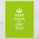 Seu ditado personalizado "Mantenha Calma" em um belo decor personalizado de cor verde-acento. Um estilo "Manter Calmo" personalizado dizendo em um presente gentil. Humorístico ou caprichoso experimente suas palavras criativas em duas linhas editáveis de texto. Lembre-se de usar letras CAPITAL para obter melhores resultados. Use o link "Perguntar a este Designer" para entrar em contato conosco com suas solicitações especiais de design ou para obter assistência com suas necessidades de personalização.