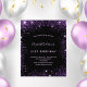 Por favor, note que este convite está no papel de folheto e é muito fino. Os envelopes não estão incluídos. Para convites mais espessos (mesmo design) visite nossa loja. Um convite de aniversário feminino e feminino de 21 ruas (ou qualquer idade). Na frente: Um fundo preto chic. Decorado com pó brilhante púrpura escura. Personalize e adicione um nome e detalhes da parte. O nome é escrito com um script de estilo manuscrito, letras claras e roxas. Fundo: fundo preto e brilho sujo.