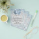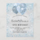 Por favor, note que este convite está no papel de folheto e é muito fino. Os envelopes não estão incluídos. Para convites mais espessos (mesmo design) visite nossa loja. Para um elegante aniversário de 18 anos (ou qualquer idade). Um fundo metálico falso prateado. Decorado com poeira azul esfolada e balões. Personalize e adicione um nome, idade e detalhes da festa. O nome é escrito com um script de estilo manuscrito