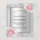 Flyer Aniversário, cor-de-prata rosa-floral convite