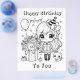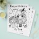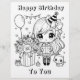 Bela aniversariante com seus balões, gatinhos e presentes. Página de cores simples e simples, preta e branca para crianças numa festa de aniversário ou apenas para diversão. Você pode comprar-los em massa. Excelente para professores, pré-escolas ou festas de aniversário!