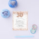 Por favor, note que este convite está no papel de folheto e é muito fino. Os envelopes não estão incluídos. Para convites mais espessos (mesmo design) visite nossa loja. Para um aniversário de 30 anos elegante. Um fundo branco. Decorado com rosa dourado, cintilação falsa rosa, faíscas. Personalize e adicione um nome e detalhes da festa. O nome é escrito com um script de estilo manuscrito, número 30 com fontes de estilo de balão.