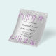 Por favor, note que este convite está no papel de folheto e é muito fino. Os envelopes não estão incluídos. Para convites mais espessos (mesmo design) visite nossa loja. Um convite moderno, na moda e glamouroso para a festa de aniversário (ou qualquer idade) de uma mulher. Um fundo metálico prateado com aparência falsa, com púrpura gota-gota, pintura pingando. O nome é escrito com um script estilo preto moderno, escrito à mão. Personalize e adicione um nome, idade e detalhes da festa.