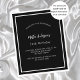 Por favor, note que este convite está no papel de folheto e é muito fino. Os envelopes não estão incluídos. Para convites mais espessos (mesmo design) visite nossa loja. Um moderno, elegante e convite. Um fundo preto decorado com quadros brancos. Personalize e adicione um nome e detalhes. Texto branco.