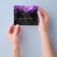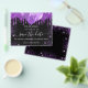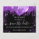 Observe que esta opção Save the date (Salvar a data) está no papel do folheto e muito fina. Os envelopes não estão incluídos. Para salvar o cartão Data (mesmo design) mais espesso, visite nossa loja. Uma moda e moda Salve a data para uma festa de aniversário 18 (ou qualquer idade). Um fundo preto decorado com gotas de brilho púrpura, faíscas e balões. Personalize e adicione uma data e nome/idade. O texto: Salvar a Data é gravado com um script de estilo com letra de tendência grande.