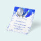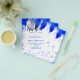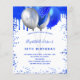 Por favor, note que este convite está no papel de folheto e é muito fino. Os envelopes não estão incluídos. Para convites mais espessos (mesmo design) visite nossa loja. Um fundo branco. Decorado com o visual azul-real de brilho pingando tinta pingando, faíscas. Balões azuis e prateados falsos. Personalize e adicione um nome e detalhes da parte. O nome é escrito com um script de estilo manuscrito.