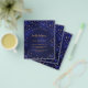 Por favor, note que este convite está no papel de folheto e é muito fino. Os envelopes não estão incluídos. Para convites mais espessos (mesmo design) visite nossa loja. Um convite de aniversário glamouroso para ele e para ela. Um fundo azul marinho decorado com estrelas douradas falsas. A cor azul é irregular. Personalize e adicione um nome e detalhes da parte. Adicione o ano de nascimento e o ano da celebração Back: fundo azul marinho e estrelas ouros.