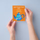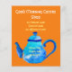 Um folheto adequado para uma cafeteria ou loja de café, ou inauguração com ilustração de bule de café retrô fofo e colorido contra um fundo cinza. Fofo, colorido e retrô. Todo o texto é totalmente personalizável para atender às suas necessidades.