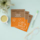 Um panfleto adequado para um compro de café ou um compro de café, ou grande abertura com ilustração de café simples e giro para café com design, em forma de café, contra um fundo castanho e laranja.Bonita, colorida e moderna. Todo texto é totalmente personalizável para atender às suas necessidades.