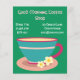 Um panfleto adequado para um compro de café ou um compro de café, ou grande abertura com xícaras de chá retrô bonitinhas e coloridas ilustração de café com café contra fundo de menta.Bonita, colorida e retrô. Todo texto é totalmente personalizável para atender às suas necessidades.