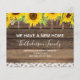 Orçamento Rustic Farmhouse Wood, String Light e Yellow Sunflower Flowers and Lace We Movs New Home or New Address Cards - inclui bela e elegante tipografia de script com moderno floral para a celebração especial New Home ou New Address.