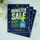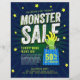 Folheto De Anúncio De Varejo De Halloween Verde Azul Com Mão De Monstro Verde Saindo Do Saco De Compras. Personalize Para O Seu Gosto.