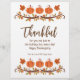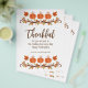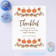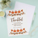O dia de Ação de Graças é o momento perfeito para que os clientes (ou funcionarios) saibam quanto você os aprecia. A design apresenta abóboras, folhas de outono e "Obrigado" e "para você não só nas férias, mas todos os dias! Feliz Dia de Ação de Graças." em cores do outono e roteiro de tendências. Você pode personalizá-lo facilmente com qualquer saudação que quiser e, claro, adicionar o nome de sua empresa.