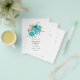 Aqua e o convite de casamento floral de ouro de folha falsa com sotaques de chá personalizáveis para seus detalhes de evento. Ideal para qualquer tema ou casamento de jardim. Os envelopes não estão incluídos. Para convites mais espessos com envelopes incluídos e produtos correspondentes no mesmo tema, consulte a coleção abaixo.