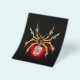 Aranha mecânica, com pá-pá de ouro, engrenagens de latão e uma lâmpada de vidro vermelha sobre fundo preto. Estilo Steampunk.