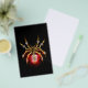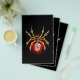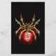 Aranha mecânica, com pá-pá de ouro, engrenagens de latão e uma lâmpada de vidro vermelha sobre fundo preto. Estilo Steampunk.