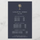 O design de folheto elegante para salões de cabelo ou estilistas mostra seus serviços ou sua lista de preços em letras brancas clássicas em um fundo azul marinho adornado com uma ilustração falsa de palmeira de ouro para um olhar chico tropical. Inclui três títulos personalizáveis e campos de texto do corpo e espaço para as informações de contato do salão na parte inferior. Para ajustar o layout, digite seu texto e use a função Personalizar para alterar o posicionamento e os tamanhos de fonte.