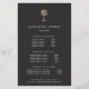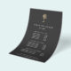 O design de folheto elegante para salões de cabelo ou estilistas mostra seus serviços ou sua lista de preços em caracteres brancos clássicos em uma cinza de carvão enfeitiçada com uma ilustração falsa de palmeira de ouro para um olhar chico tropical. Inclui três títulos personalizáveis e campos de texto do corpo e espaço para as informações de contato do salão na parte inferior. Para ajustar o layout, digite seu texto e use a função Personalizar para alterar o posicionamento e os tamanhos de fonte.