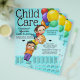 O Folheto de Cuidados Infantis 8x10 totalmente personalizável é absolutamente adorável e totalmente exclusivo. Criado e pintado profissionalmente. Apresenta crianças pintadas à mão voando para longe com balões. Você pode mudar todo o texto E a cor do plano de fundo para torná-lo realmente pessoal. Segure cada conselho de boletins na sua área! Na biblioteca, deli, escritório poste, pizzaria, parque, ginástica, consultório de pediatra etc.