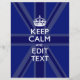 Seu personalizado "Fique Calmo" dizendo em um ousado decor de união azul. Um estilo "Manter Calmo" personalizado dizendo em um presente gentil. Humorístico ou caprichoso experimente suas palavras criativas em duas linhas editáveis de texto. Lembre-se de usar letras CAPITAL para obter melhores resultados. Use o link "Perguntar a este Designer" para entrar em contato conosco com suas solicitações especiais de design ou para obter assistência com suas necessidades de personalização.