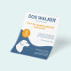 Na moda azul-e branco modelo de negócios com andador de cães com um toque de cor laranja. O preço é colocado sobre um círculo laranja para um detalhe atraente. Há também a silhueta branca de cabra de Destei. O cachorro se parece com um cão da raça Labrador Retriever. Personalize as áreas de texto de exemplo com suas informações comerciais.