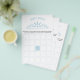 Este charmoso cartão de chá bingo de bebê apresenta um adorável tema azul picado, embelezado com uma intrincada flor e folhas num pano de fundo branco limpo. No topo, o título alegre "Baby Bingo" acrescenta um toque lúdico, melhorando o entusiasmo do jogo. Celebre a essência da tradicional arte popular mexicana e faça do seu chá de fraldas um evento memorável com este encantador bingo.