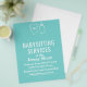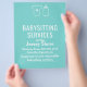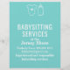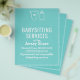 Esses folhetos de negócios limpos são ideais para seu serviço de babá, babá ou assistência à infância. Adicione seus detalhes clicando na opção "Personalizar". Possui um bebê bonitinho, coração, frasco e um fundo azul bebê com texto branco. Quer você seja uma babá na praia de Jersey ou em qualquer lugar, esta design deve ser notada!