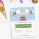 Um folheto colorido de planejador de festas & eventos decorado com um bolo de aniversário, algumas nuvens em um céu azul e balões coloridos. Adequado para organizadores de eventos que são responsáveis por organizar uma variedade de eventos, incluindo festas de aniversário para crianças e adultos, lançamentos de produtos, chás de bebê, celebrações familiares, aniversários de casamento, festas de solteiro e festas temáticas.