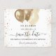 Observe que esta opção Save the date (Salvar a data) está no papel do folheto e muito fina. Os envelopes não estão incluídos. Para salvar o cartão Data (mesmo design) mais espesso, visite nossa loja. Um fundo branco chic decorado com falso brilho dourado e balões. Personalize e adicione uma data e nome/idade. O texto: Salvar a Data é gravado com um script de estilo com letra de tendência grande.
