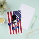 Engraçado design de bandeira patriota americano moderno e orgulhoso, com um crânio gótico divertido, que veste o chapéu estilo Abraham Lincoln, e estrelas brancas e azuis vermelhas e estrelas e listras estreladas estreladas por uma estrela americana, com texto da América Deus abençoe dizendo: Felicite orgulhosamente o dia de Ação de Graças ou o dia 4 de julho de independência ao estilo.