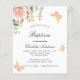 Por favor, note que este convite está no papel de folheto e é muito fino. Os envelopes não estão incluídos. Para convites mais espessos (mesmo design) visite nossa loja. Um fundo branco decorado com verde de eucalipto, ouro rosa e rosa-rosa-rosa-pincel, folhas de ouro e borboletas. Personalize e o nome e os detalhes da cerimônia.