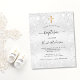 Por favor, note que este convite está no papel de folheto e é muito fino. Os envelopes não estão incluídos. Para convites mais espessos (mesmo design) visite nossa loja. Um convite ao batismo moderno, elegante e minimalista para rapazes ou raparigas. Fundo metálico de aspecto fino prateado decorado com poeira falsa brilhante. Personalize e adicione um nome e detalhes. Letras pretas coloridas.