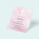 Por favor, note que este convite está no papel de folheto e é muito fino. Os envelopes não estão incluídos. Para convites mais espessos (mesmo design) visite nossa loja. Um batismo moderno e elegante, celebrando uma menina. Um céu rosa claro como fundo, decorado com uma cruz branca. Personalize e adicione um nome e detalhes. Letras pretas coloridas.