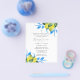 Batismo botânico religioso elegante ou armações de batismo bizarro batizantes para o seu evento detalhes com uma borda de limões de cor d'água originais em tons de amarelo com folhas azuis e verdes. Seus detalhes de evento são definidos em uma elegante serifa tradicional e tipografia de script. Este convite neutro de gênero inclui uma escritura que você pode editar para incluir um verso de bíblia religiosa que se adequa às suas necessidades. A carta se reverte para um padrão de limão complementar. O convite perfeito e neutro para primavera, verão, outono do outono, eventos temáticos rústicos ou jardins. Para ver mais modelos de batismo como esse visite www.zazzle.com/dotellabelle Art e design por Victoria Grigaliunas