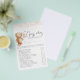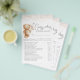 Projetado para coordenar com nossos convites para chuveiros 'Urso e abelha' Bee. Este chá de fraldas bonitinho 'Adivinhem quem', Mamãe ou jogo de Pai, apresenta aspergaminhos de confete de ouro rosa, sobre um urso de pelúcia de Aquarela, segurando um monte de grama-palha de creme com delicados florais de pêssego olhando para uma abelha. Todas as perguntas podem ser editadas, então se você quiser mudá-las você pode! Todo texto pode ser personalizado usando o modelo desde que os estilos de fonte e a cor de fundo também possam ser alterados clicando no link personalizar depois de personalizar. Divirtam-se e adivinhem-se!