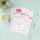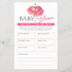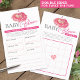 Bebê chá de fraldas duplo no bingo de bronzeado e predições de bebês apresentando uma pintura original com aquarela branca de um bebê num florescimento de flor rosa vermelha. Personalize com suas próprias palavras e predições ou use as nossas. © Pintura manual exclusiva em aquarela e projetada por Sarah Trett exclusivamente para www.mylittleeden.com apenas em Zazzle.