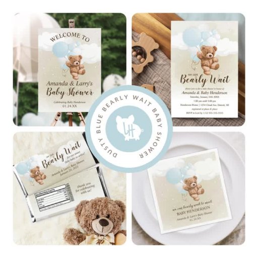 Dusty Blue Balloon Teddy Bear Baby ShowerCriado por Amanda Cudnik