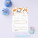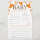 Compartilhe suas previsões e conselhos aos pais para que estejam com esta atividade de chá de fraldas amigável ao orçamento. Eles vão adorar olhar para as palavras especiais que você compartilhou com eles em um dia tão especial. O design é perfeito para um chá de fraldas do tema de outono e é perfeitamente par com a nossa suíte de chás de fraldas "Nós podemos esperar para nos apaixonar".