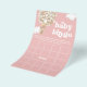 Entra num mundo de capricho e antecipação com nosso Chá de fraldas Jogo BINGO Flyer do Urso Rosa, Balões do Urso Rosa, uma celebração do aquecimento cardíaco onde os sonhos voam em meio a um pano de fundo de matizes de pastel mole e encanto retrô. Esse design encantador apresenta um urso querido bege soprando em uma cesta, erguido por um magnífico balão de ar feito de uma matriz de pequenas bolas de bege e ouro. Cada detalhe é desenhado amorosamente, capturando a essência da alegria e do entusiasmo como os desenhar de chegada dos pequenos. O fundo cor-de-rosa suave envolve a cena com um calor suave, enquanto a fonte retrorreflectora adiciona um toque de elegância nostálgica à composição geral. A maioria das letras é editável - clique no botão "Personalizar mais" para editar. Itens correspondentes disponíveis.